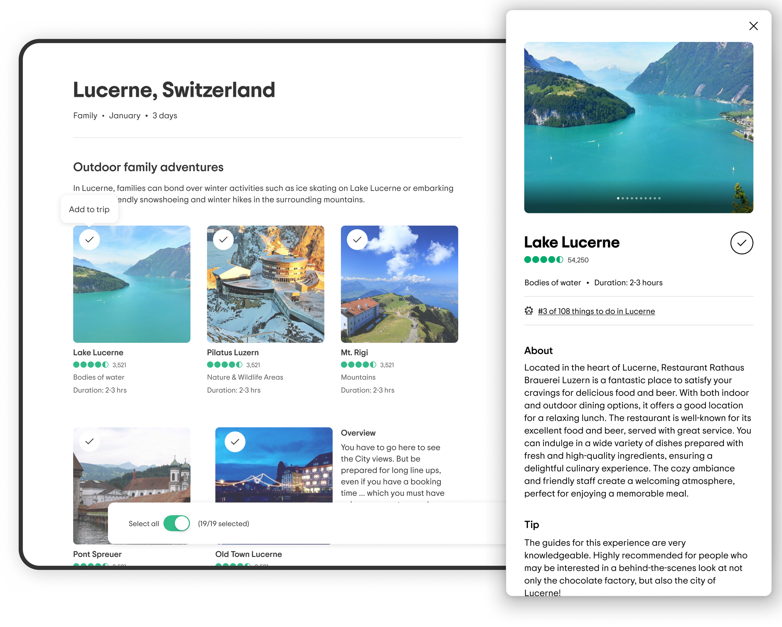 We infused community insights directly into the Trip Builder experience. AI summaries now explain why a place is recommended, helping travelers understand local context. We also surfaced top-rated spots loved by real people, clearly marked with “community favorite” signifiers.